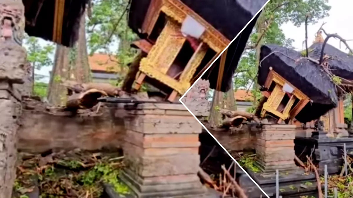 BADUNG, Bali — A severe storm on Saturday, December 27, has caused significant damage to a culturally important temple in Mengwi, Badung Regency, underscoring the tangible impacts of Bali’s current volatile weather. The Pura Dalem Gede Banjar Gede in Abianbase Traditional Village sustained structural damage after being struck by a large tree uprooted during intense rains and strong winds.