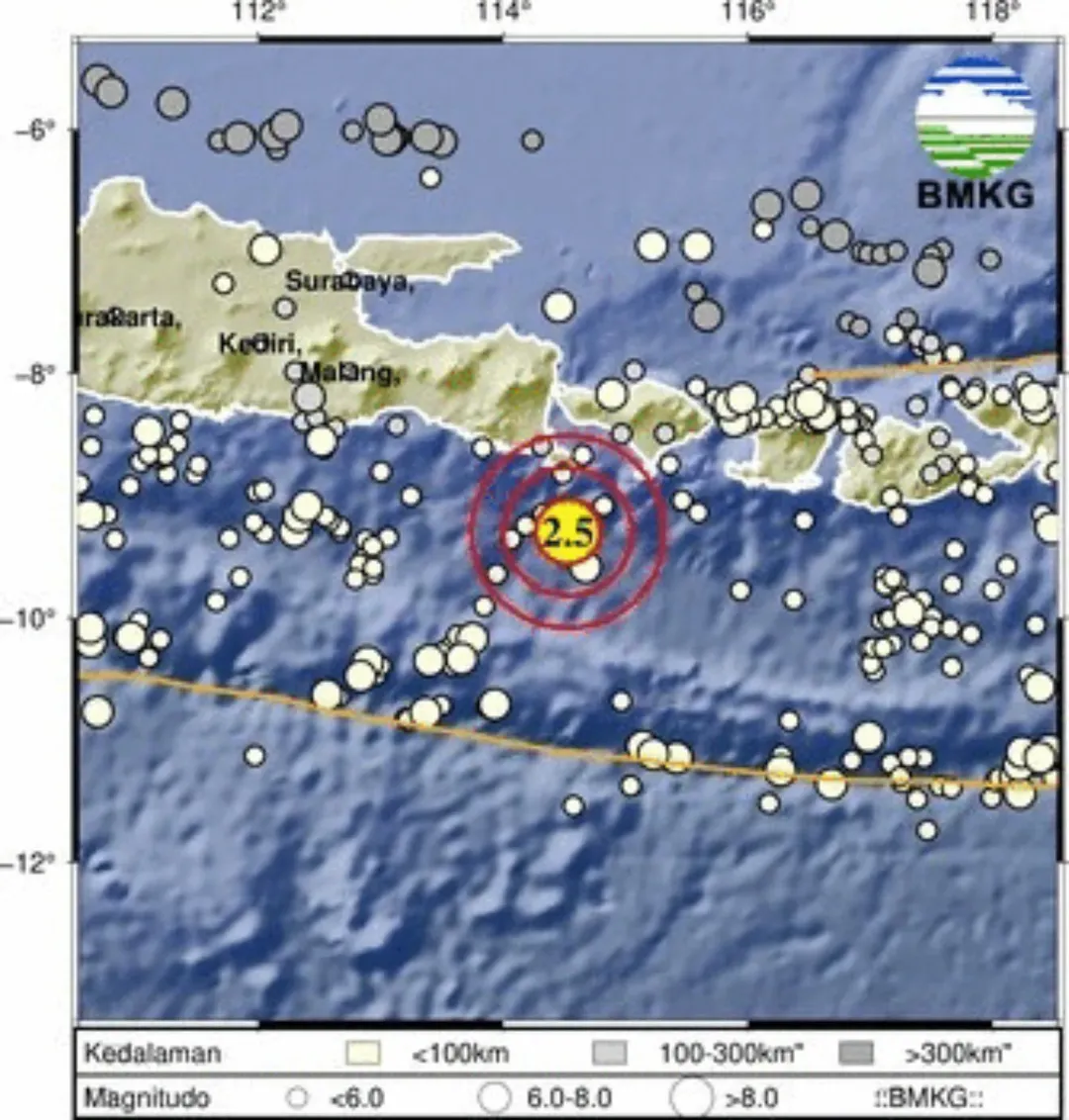 • 20:20 WIB — M2.5, 95 km SW of Kuta Selatan, 27 km depth