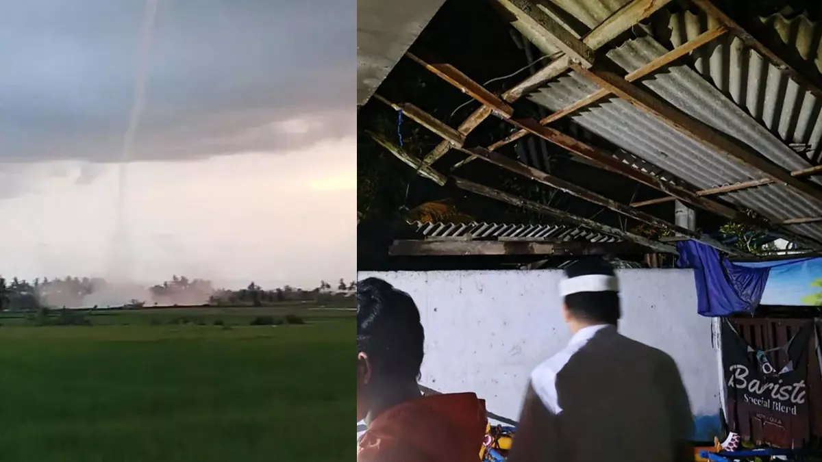 The extreme weather, occurring around 6:30 PM local time in the Banjar Tembles area of Penyaringan Village, Mendoyo District, was confirmed by the Jembrana Regional Disaster Management Agency (BPBD). According to eyewitness accounts from local shrimp farm employees, three distinct waterspouts formed over the ocean before moving inland—two from the west and one from the east.