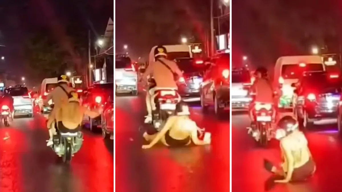 CANGGU, Bali — A brief video circulating online this week shows a moment many Bali visitors will recognize instantly. On a busy Canggu street after sunset, amid wet asphalt and stop-and-go traffic, a tourist riding pillion on a scooter suddenly loses her balance and slides gently onto the rain-slicked road.