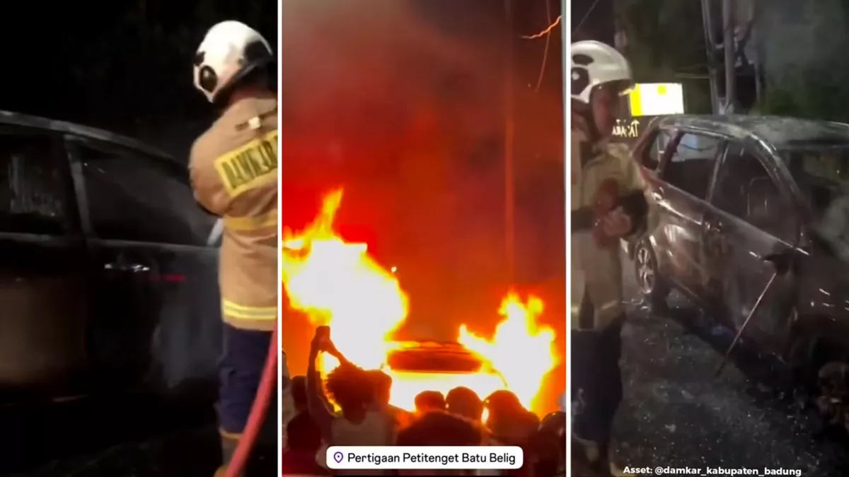 At approximately 10:35 p.m. on Thursday, December 25, a Daihatsu Xenia operated by Agus Purwanto, a Grab driver, was engulfed in flames while traveling through Kerobokan Kelod. The fire, believed to have been caused by an electrical short circuit, destroyed the vehicle entirely. No injuries were reported.
