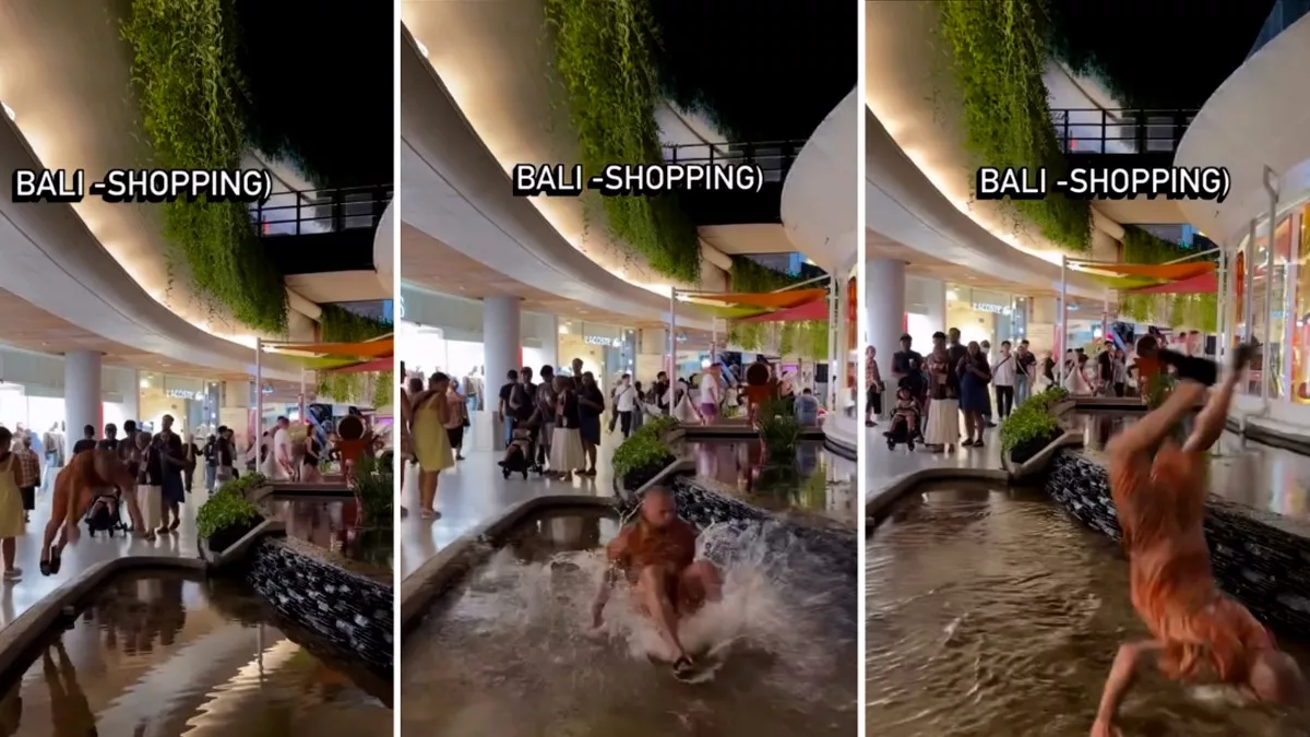 KUTA, Bali — A short video filmed at Beachwalk Shopping Center has ricocheted across social media, eliciting a mix of amusement, disbelief, and palpable irritation. The clip shows a foreign tourist, dressed in a patterned shirt, taking a brief run-up before executing a casual backflip into a shallow decorative pond within the popular mall—a move that froze nearby shoppers mid-stride.